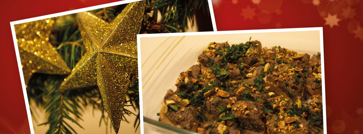 - Cut slices of celeriac. Pipe on mushroom terrine, sprinkle with pistachios and garnish with parsley.