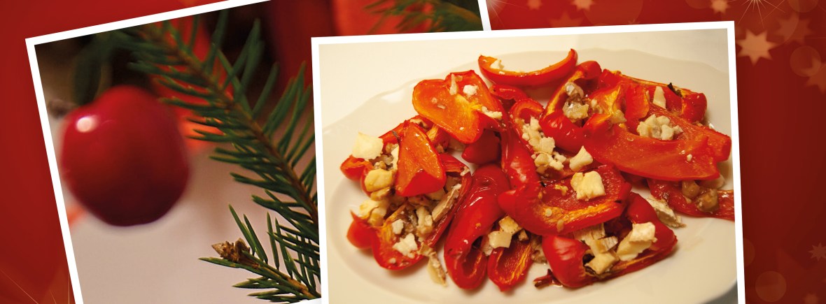 - take bellpeppers out, sprinkle mixture over