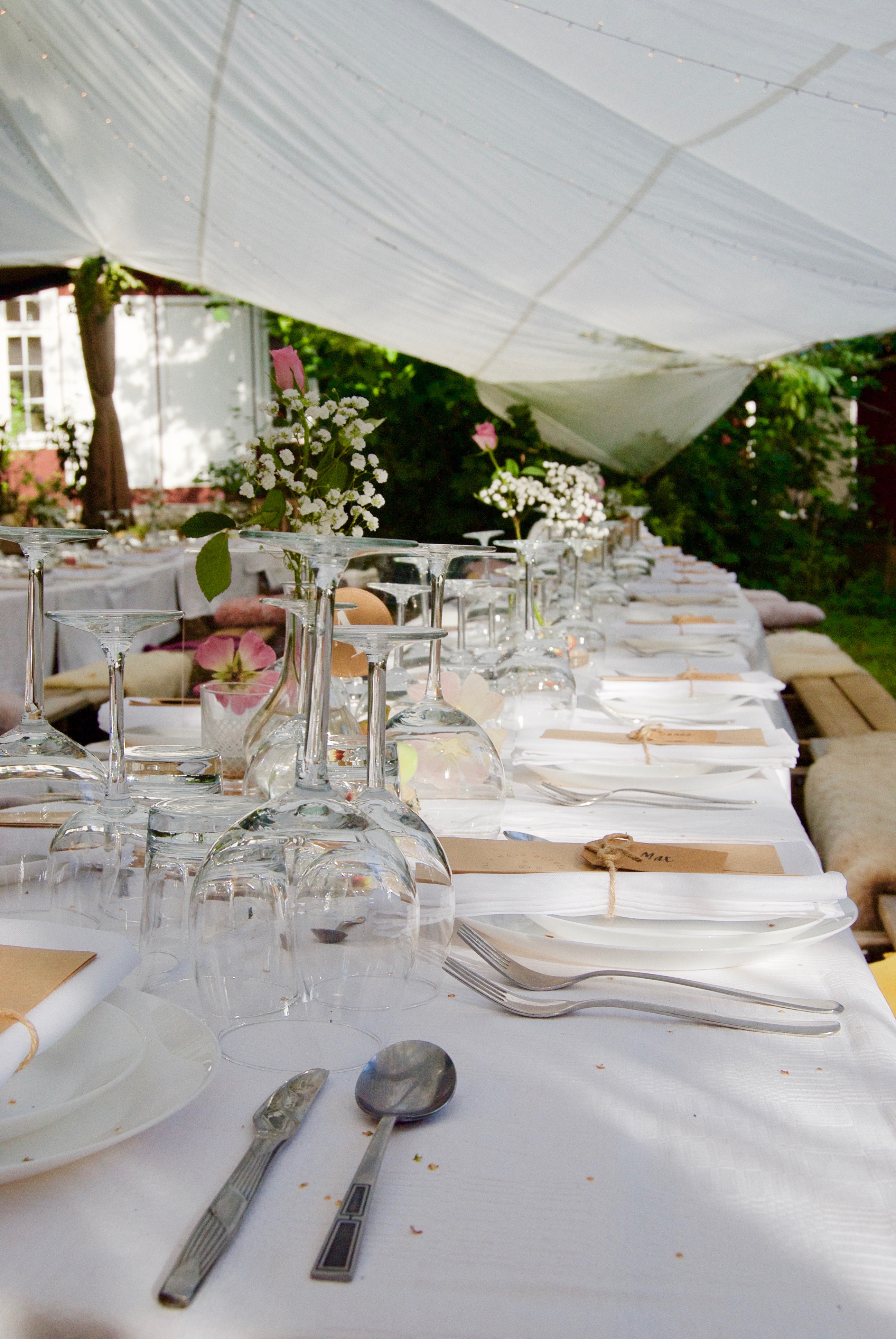 Vad sägs om att fira i vår trädgård eller inne i det mysiga huset? Vi kan erbjuda paviljonger, din egen buffé och till och med en scen för ett band att spela. Allt Corona säkert och i enlighet med lokala hälsovårdsmyndigheter.