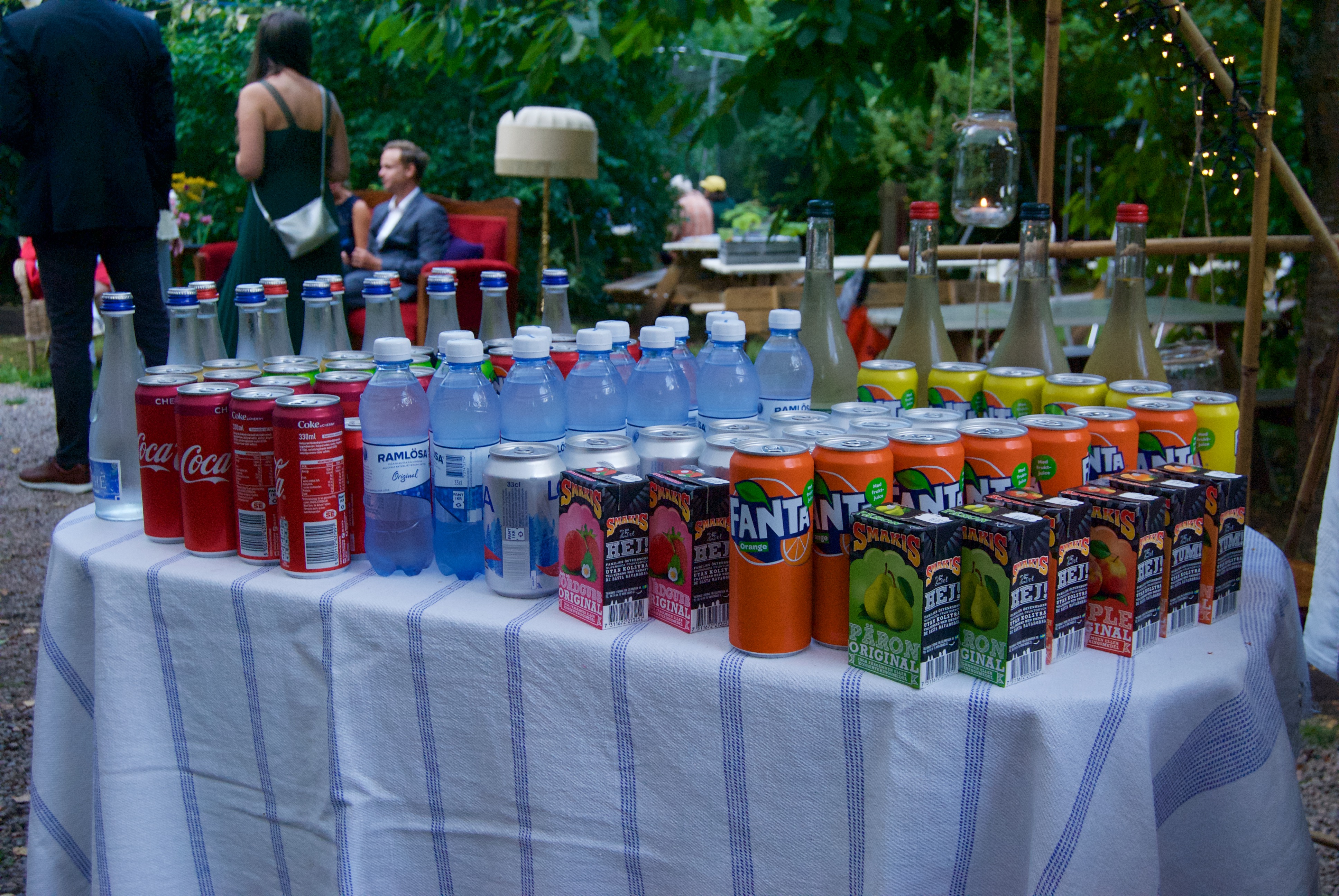 Du kan också ha en stor drinkbuffé med saft, läsk, lätt öl, cider. Vi erbjuder även alkoholhaltiga drycker som vin, öl eller mousserande vin.